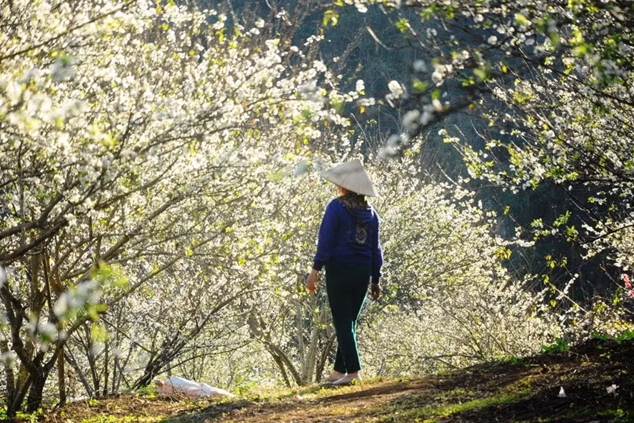 Vào những ngày này khi đến với cao nguyên Mộc Châu nắng gió, bạn như lạc bước trong chốn thần tiên bởi khung cảnh mê hoặc của nắng vàng, trời xanh và những cánh rừng mận nở trắng.