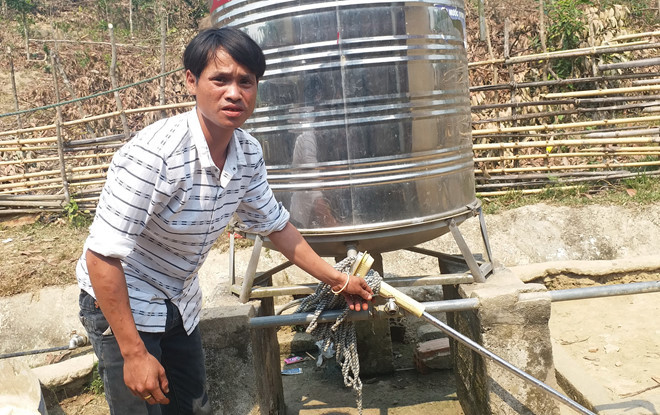 Rồi anh Tối dẫn chúng tôi ra mấy bồn nước 2.000 lít của nhà mình và những gia đình xung quanh, vặn đến trẹo tay nhưng không có giọt nước nào chảy ra. Anh Tối giải thích: Đây là hệ thống nước tự chảy, nhưng chỉ chảy được 2 - 3 tháng đầu, sau đó nước chảy đâu không biết.