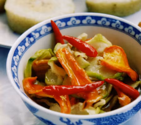 Miền Bắc có món dưa hành, miền Nam có dưa củ kiệu tôm khô, với người miền Trung dưa món là lựa chọn không thể thiếu để ăn kèm với bánh tét, thịt kho. Dưa món làm từ nhiều nguyên liệu như cà rốt, đu đủ, dưa leo, củ cải, củ kiệu... ngâm cho đến khi có vị chua mặn, giòn giòn là ăn được.