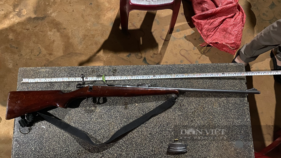 Tại hiện trường, cơ quan chức năng thu giữ 1 khẩu súng tự chế dài 1,09m, 1 vỏ đạn đã sử dụng và 1 hộp đạn bên trong còn 8 viên đạn chưa sử dụng.