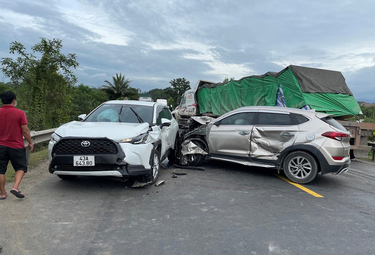 Cùng lúc đó, ô tô BS: 43A-643.80 do anh Trương Tấn Mạnh (SN 1980, ngụ thôn Hưởng Phước, xã Hoà Liên, huyện Hoà Vang) điều khiển đi sau ôtô BS: 92A-116.47 va chạm vào phía sau ô tô BS: 92A-116.47.