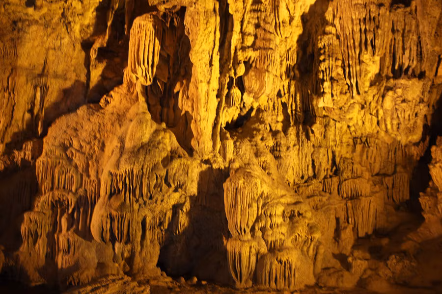 | Thạch nhũ với nhiều hình thù kỳ lạ bên trong động Ngườm Ngao |