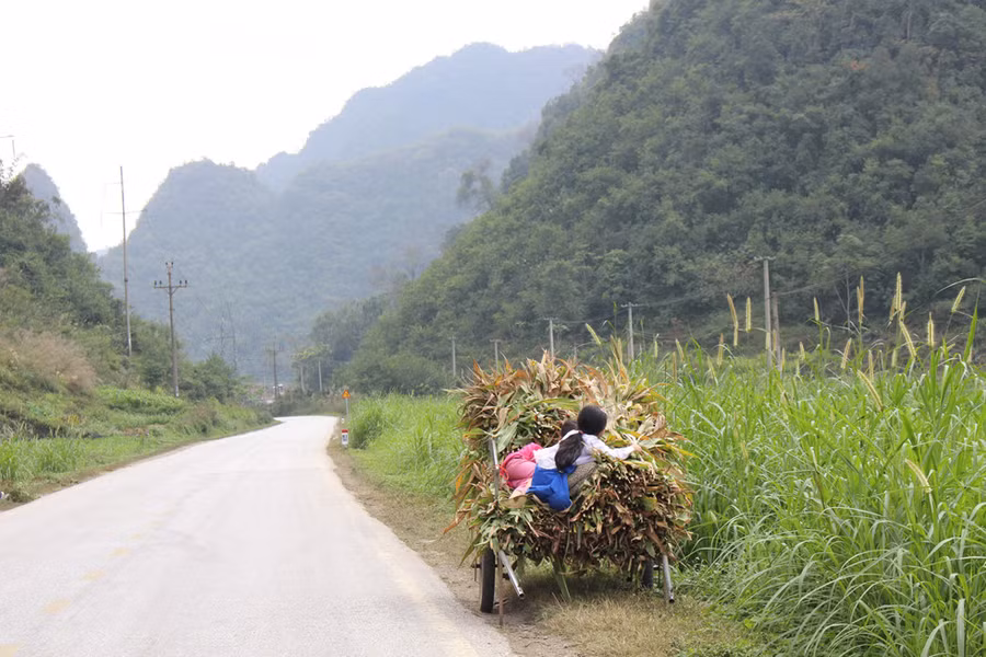Từ trung tâm thành phố, chạy chừng 80 km là đến thác Bản Giốc. Rong ruổi trên cung đường nơi biên cương Tổ quốc, tôi không khỏi ngỡ ngàng khi băng qua những con đèo quanh co, uốn lượn, chìm đắm trong vẻ đẹp nao lòng của núi non trùng điệp và những cánh rừng xanh ngút ngàn. Trái với cuộc sống ồn ào nơi đô thị, những mái nhà nép mình dưới chân núi tạo nên khung cảnh bình dị, yên ả.
