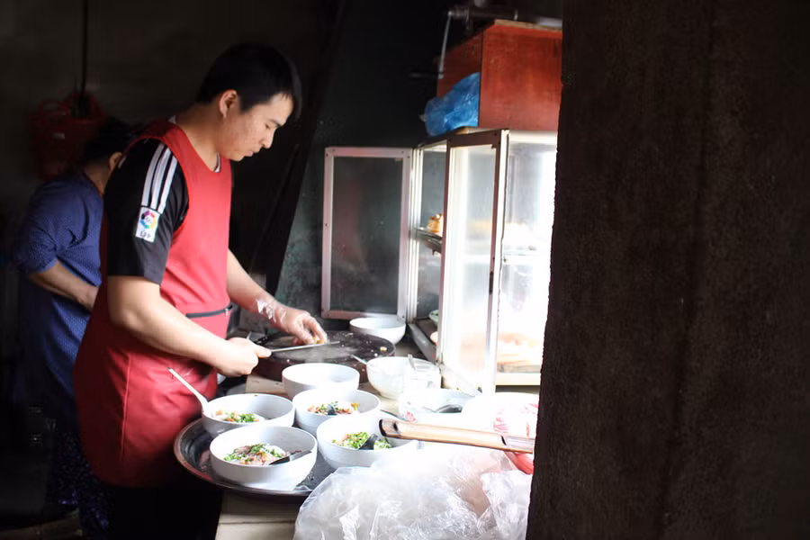 | Một bác bún nóng hổi, thơm ngon ở Trùng Khánh, Cao Bằng với giá chỉ 20.000 đồng |
