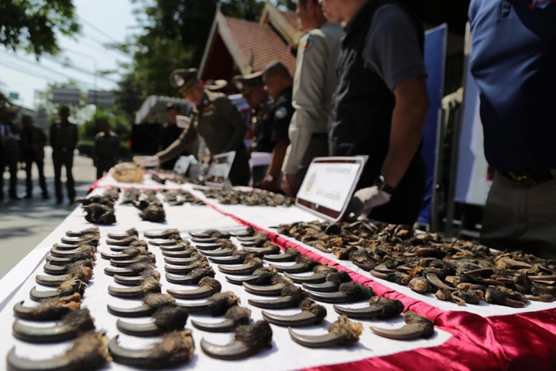 Cảnh sát đã tịch thu hơn 1.600 mẩu móng vuốt gấu và bộ phận của hổ mà các nghi phạm dự định buôn lậu sang Lào.
