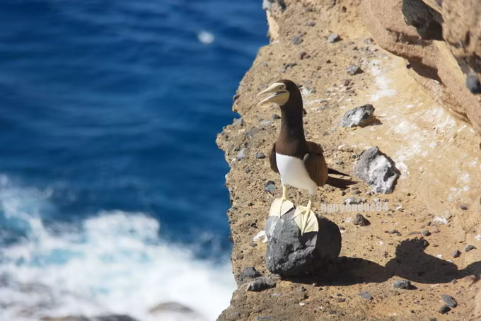 Chim mòng biển, chân có màng như chân vịt, đậu ở cuối mép của hòn đảo.