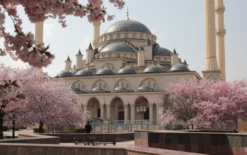 Trên khắp thế giới, các địa danh nổi tiếng được bao quanh bởi những bông hoa tuyệt đẹp vắng lặng đến lạ thường. Trong ảnh, hoa anh đào bung nở nơi nhà thờ Hồi giáo lớn nhất nước Liên bang Nga.