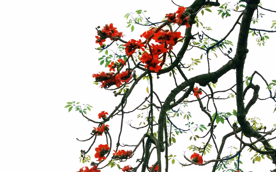 Tôi chẳng nhớ cây gạo đầu làng mình có từ khi nào. Khi đến tuổi cắp sách đến trường, mỗi mùa hoa nở, đám học sinh chúng tôi đều cố đi sớm một chút, hay buổi chiều về nán lại lâu hơn để lượm những bông hoa mới rụng, còn tươi rói kết thành cả xâu như đèn hoa. Vì thân cây chằng chịt gai nên ít ai dám trèo lên để lấy nụ, hoa của nó.