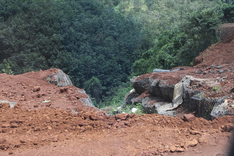 | Trước đó, đoạn đường này nhiều chỗ đã bị sạt lở, phải làm bờ kè. Ảnh: Đình Trọng |