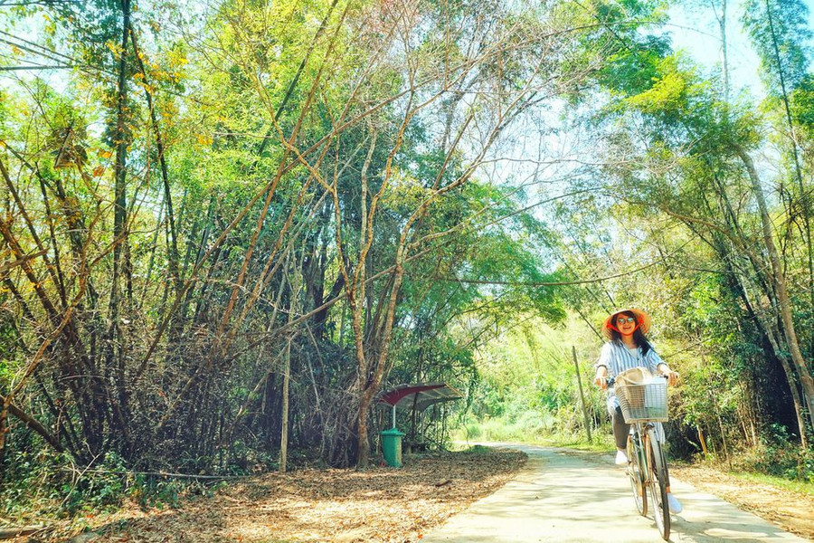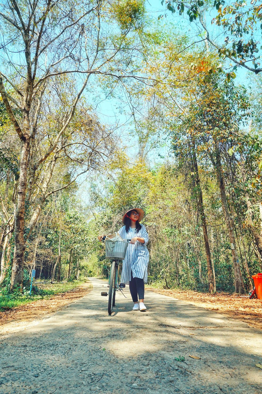 Giữa một buổi trưa hè nắng gắt, tuy nhiên chỉ cần đặt chân sang cánh rừng, không khí trở nên mát mẻ và trong lành lạ kì. Thuê 1 chiếc xe đạp, chuẩn bị nước suối, khăn giấy, nón lá và quần áo dài tay, chúng tôi bắt đầu trốn nắng và khám phá rừng Nam Cát Tiên.