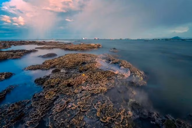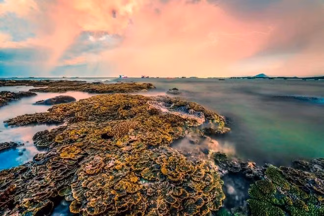 Rạn san hô Hòn Yến trong một ngày nước biển rút, như những bông hoa trên biển