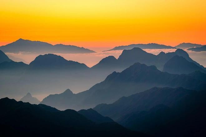 Từ trên đỉnh, mọi người dễ dàng ngắm nhìn được những cảnh tượng ngoạn mục của một nơi được xem là điểm giao nhau giữa đất và trời. Đó là những chóp núi của dãy Hoàng Liên Sơn nhấp nhô ẩn mình trong mây trắng cuồn cuộn chảy và trải dài đến vô tận. Vừa hùng vĩ, vừa lãng mạn, đẹp đến nghẹt thở Ngắm đỉnh Fansipan 3.143m giữa trời cao xanh thẳm và ánh nắng vàng ngọt lịm của bình minh và hoàng hôn Đặt chân lên đỉnh Fansipan, du khách như lạc vào một thế giới khác, tách biệt với những ồn ào náo nhiệt và tận hưởng bầu không khí mát lạnh của nhiệt độ từ khoảng 10 - 15 độ C vào thời điểm này