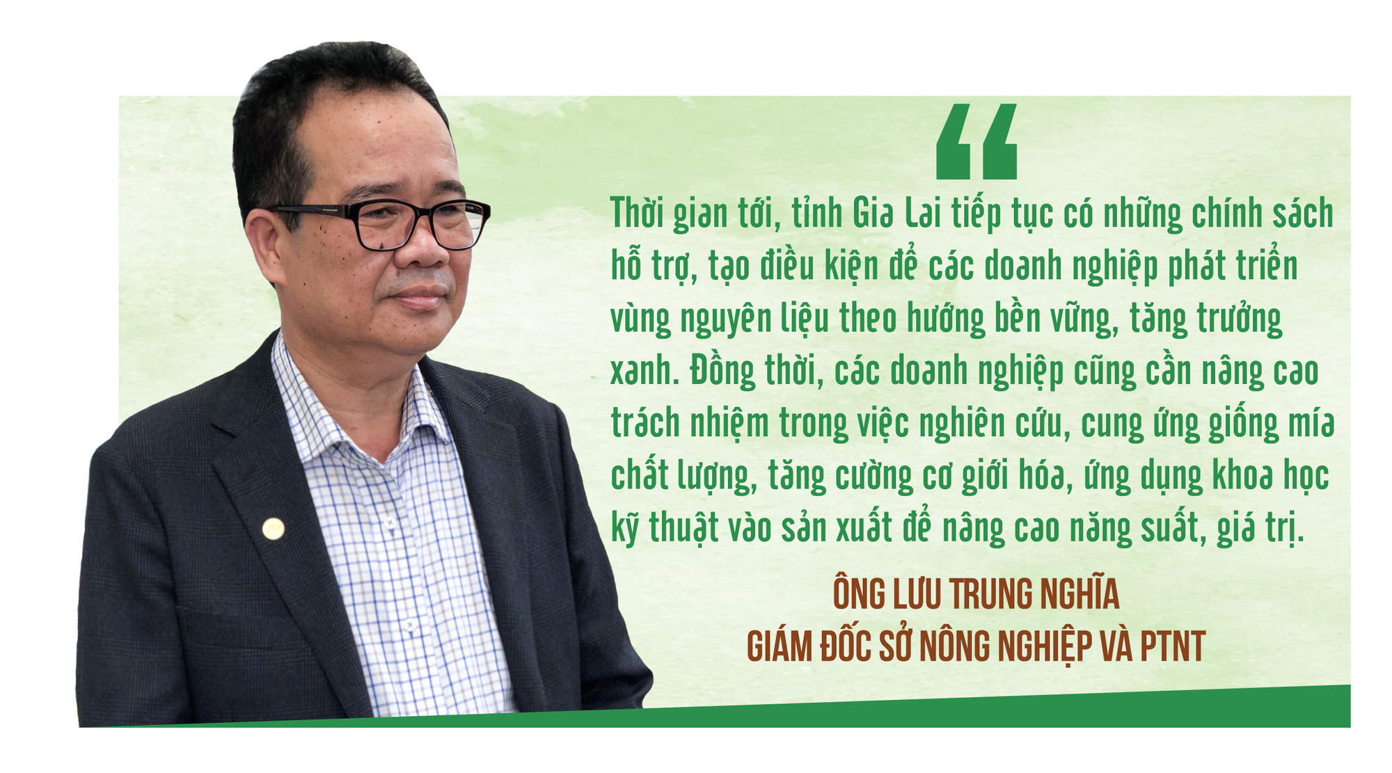 Trao đổi với P.V, ông Lưu Trung Nghĩa-Giám đốc Sở Nông nghiệp và PTNT-cho hay: Tổng diện tích mía toàn tỉnh niên vụ này khoảng 37.000 ha, tăng khoảng 6.000 ha so với vụ trước. Những năm gần đây, tư duy sản xuất của người trồng mía cũng như doanh nghiệp trong việc phát triển vùng nguyên liệu đã chuyển biến rất tích cực, khắc phục được những hạn chế trước đây. Người trồng mía và doanh nghiệp xem vùng nguyên liệu là tài sản chung để cùng xây dựng và phát triển bền vững. Cụ thể, bên cạnh áp dụng cơ giới hóa trong các khâu làm đất, bón phân, thu hoạch, doanh nghiệp đã chú trọng hơn trong việc nghiên cứu, cung ứng các giống mía chất lượng, ít sâu bệnh, năng suất cao. Đồng thời, có chính sách đầu tư, thu mua phù hợp, thu hút được sự tham gia của người dân vào chuỗi liên kết. Còn người trồng mía thì đã thay đổi tư duy sản xuất truyền thống, biết áp dụng tiến bộ khoa học kỹ thuật vào thâm canh vườn cây, trách nhiệm hơn trong việc tham gia chuỗi liên kết (không còn tình trạng chạy theo giá để phá vỡ hợp đồng đã ký trước đó với doanh nghiệp). Chính vì sự cộng đồng trách nhiệm cao của các bên mà diện tích vùng nguyên liệu của các nhà máy tăng lên, giá cả, năng suất, hiệu quả kinh tế từ cây mía cũng tăng đáng kể.