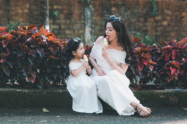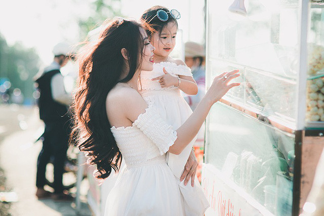 Hai mẹ con đều xinh đẹp như những nàng công chúa nên thu hút rất nhiều sự chú ý.