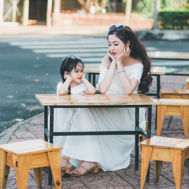Hai mẹ con có cùng sở thích ăn diện, chụp ảnh nên có rất nhiều ảnh đẹp. Nhờ vẻ đẹp của hai mẹ con, chị Cẩm Vân bán hàng khá chạy vì có nhiều khách hàng theo dõi Facebook. Mỗi tháng chị thu nhập 30 triệu đồng.