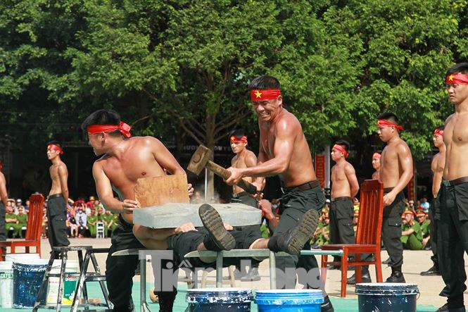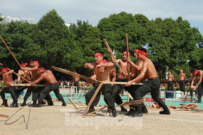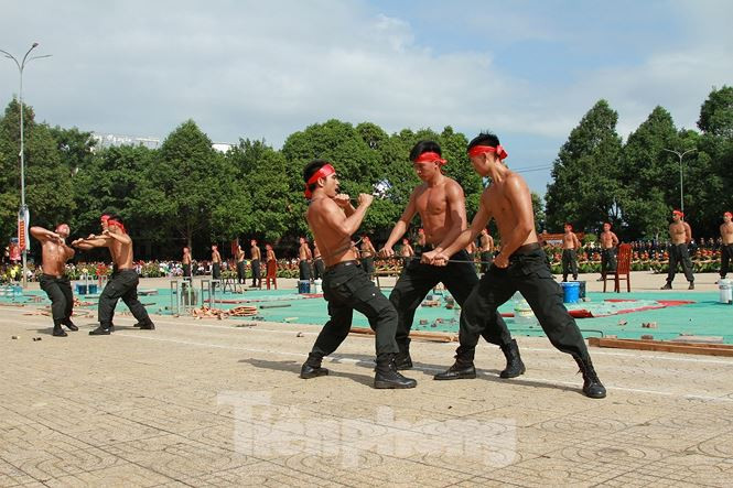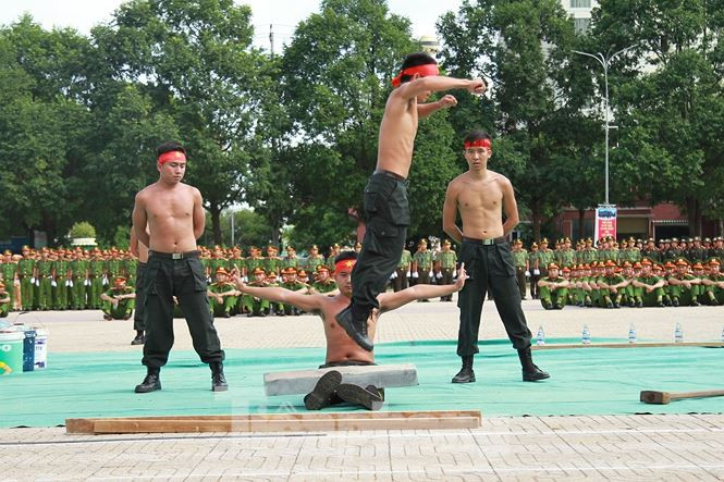 | Tại hội thi, người xem không khỏi thán phục những màn biểu diễn võ thuật đặc sắc của cán bộ, chiến sĩ công an. |