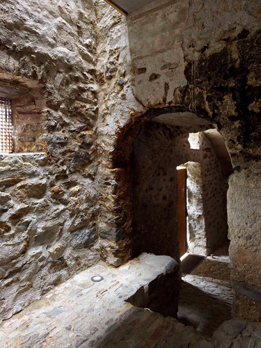 Tường và vách ngăn trong nhà cũng được lát bằng đá.