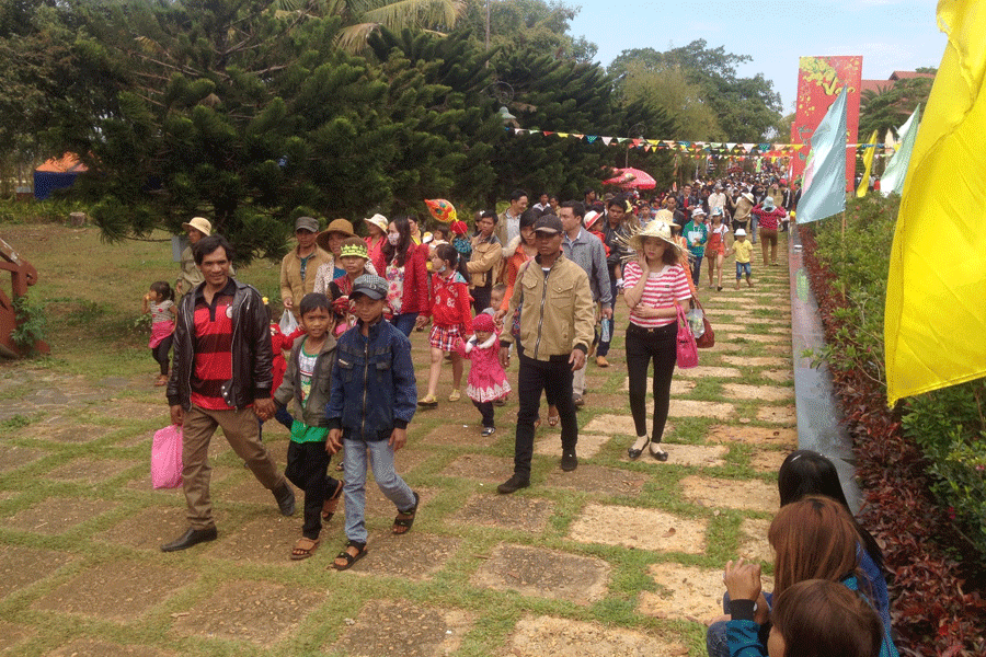 Đến hẹn lại lên, những ngày này từng dòng người nườm nượp cứ đổ về Công viên Đồng Xanh. Theo thống kê của Công ty Cổ phần Văn hóa-Du lịch Gia Lai CTC, trong ngày Mùng Một Tết Công viên đã bán ra 3.300 vé.