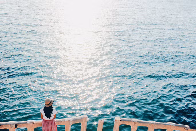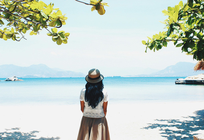 Dưới nắng hạ, làn nước biển xanh biếc. Ngẩng đầu lên lại bắt gặp một màu xanh ngắt êm dịu của bầu trời. Phút chốc, thế giới nhộn nhịp thường ngày lùi lại sau lưng.
