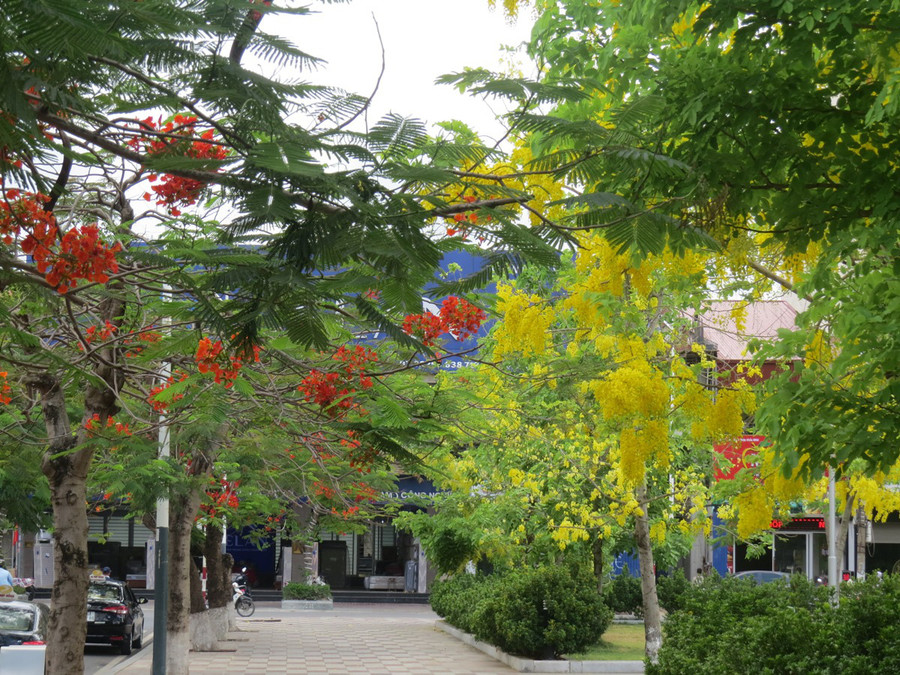 | Thật tuyệt vời khi kết hợp màu đỏ của hoa Phượng và màu vàng quyến rũ của muồng hoàng yến khiến dải trung tâm TP. Hải Phòng tràn ngập sắc màu của hoa. |