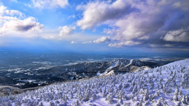 Dãy núi Hakkoda, tỉnh Aomori: Dãy núi hùng vĩ này bao gồm ngọn núi với tuyết phủ trên đỉnh. Trong đó, ngọn núi Odake nổi tiếng nhất.
