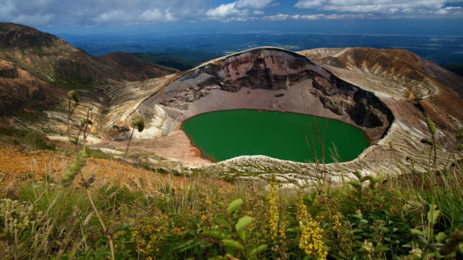 Hồ Okama, tỉnh Yamagata và Miyagi: Ba đỉnh trên dãy núi Zao ở vùng Tohoku bao quanh hồ núi lửa Okama. Hồ được đặt tên theo “kama”, chậu bằng sắt truyền thống ở Nhật Bản.