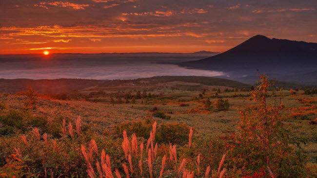Núi Chokai, tỉnh Akita và Yamagata: Các tuyến đi bộ trên núi lửa Chokai, nằm giữa tỉnh Akita và Yamagata, đưa du khách qua các đầm lầy, cánh đồng hoa dại và hồ trên núi.