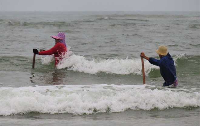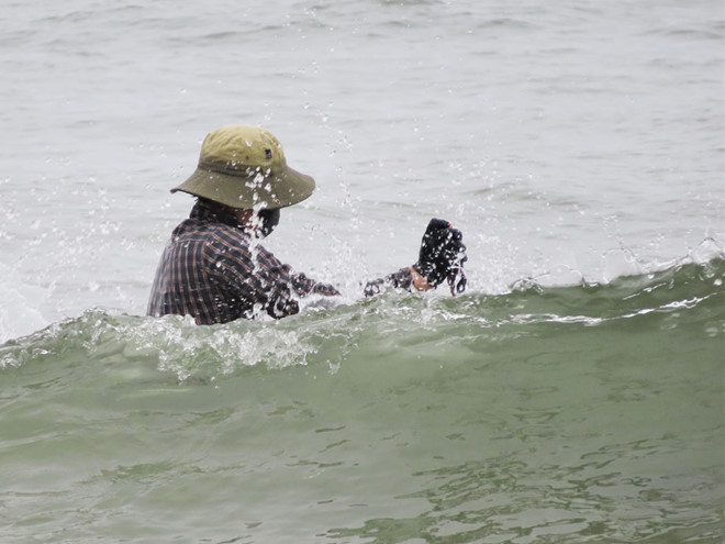 Người cào ngao phải ngâm mình trong nước biển nhiều tiếng đồng hồ. Ảnh: T.Q.N