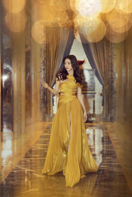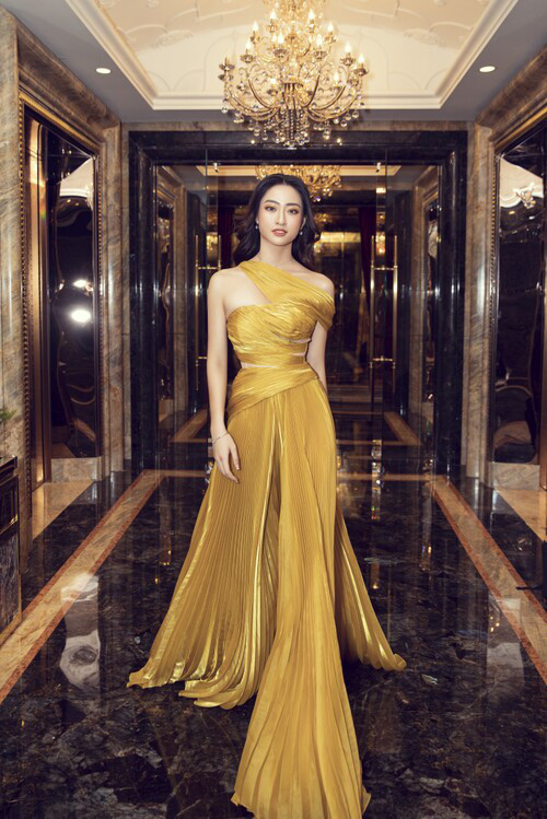 Mới đây, Hoa hậu Lương Thùy Linh gây chú ý khi diện bộ váy vàng rực rỡ khoe khéo đôi chân dài 1m22 trứ danh trong showbiz Việt tham dự một sự kiện.