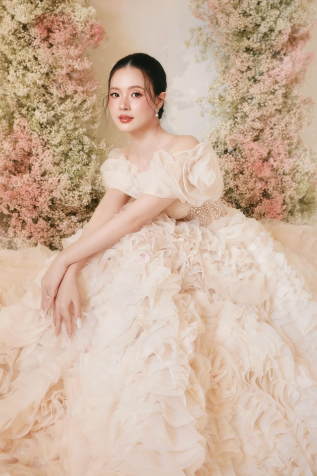 Được biết, đầm cưới của cô dâu thuộc bộ sưu tập La Rosa của nhà thiết kế Phương Linh.