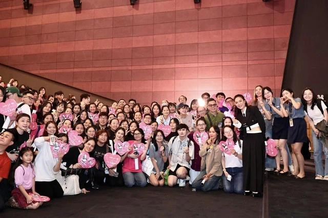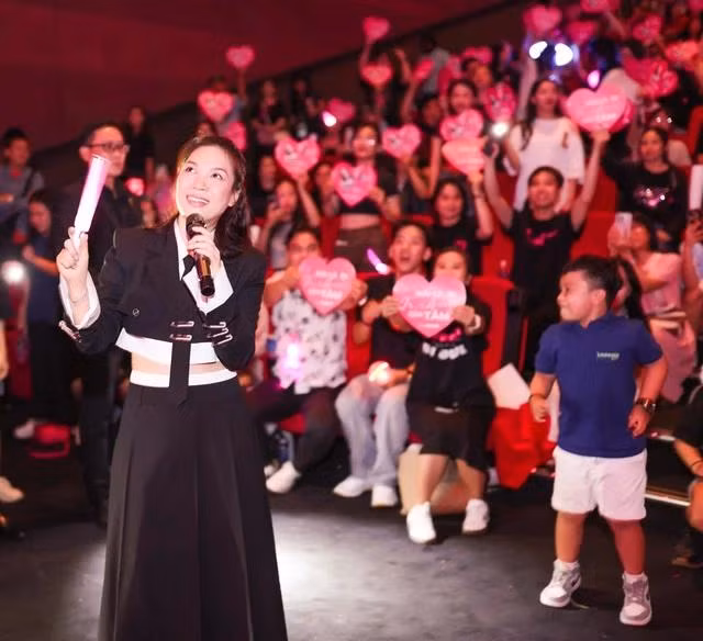 Xuyên suốt buổi xem chung tại rạp, nhiều fan đã nhún nhảy, hòa mình trong những tiết mục sôi động. Ở ghế ngồi của mình, Mỹ Tâm cũng khiến fan phấn khích khi cầm đèn cổ vũ và tương tác, cùng fan.