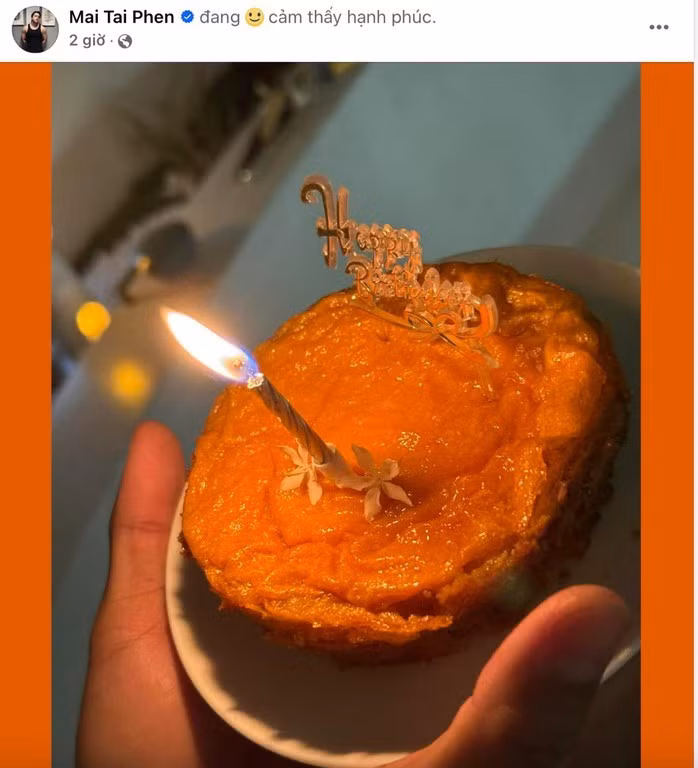 Trong bức ảnh chia sẻ về sinh nhật của chính mình trên mạng xã hội (hình ảnh chiếc bánh nhỏ xinh với nến sinh nhật), diễn viên Mai Tài Phến khẳng định "đang rất hạnh phúc".