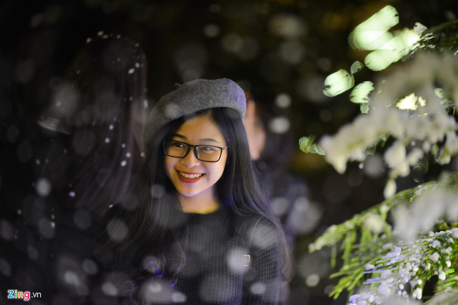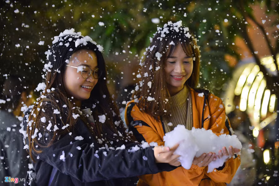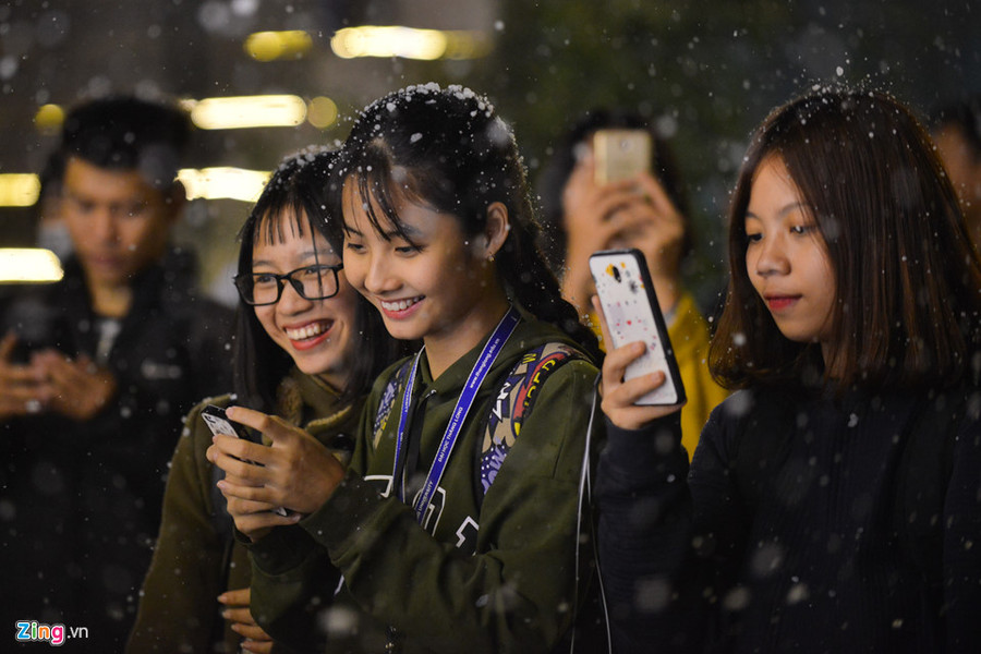 Các bạn trẻ thích thú trước màn tuyết rơi nhân tạo này. Dường như một mùa đông Hà Nội rất khác đã len lỏi đến với những bạn trẻ có mặt trong buổi tối hôm nay.