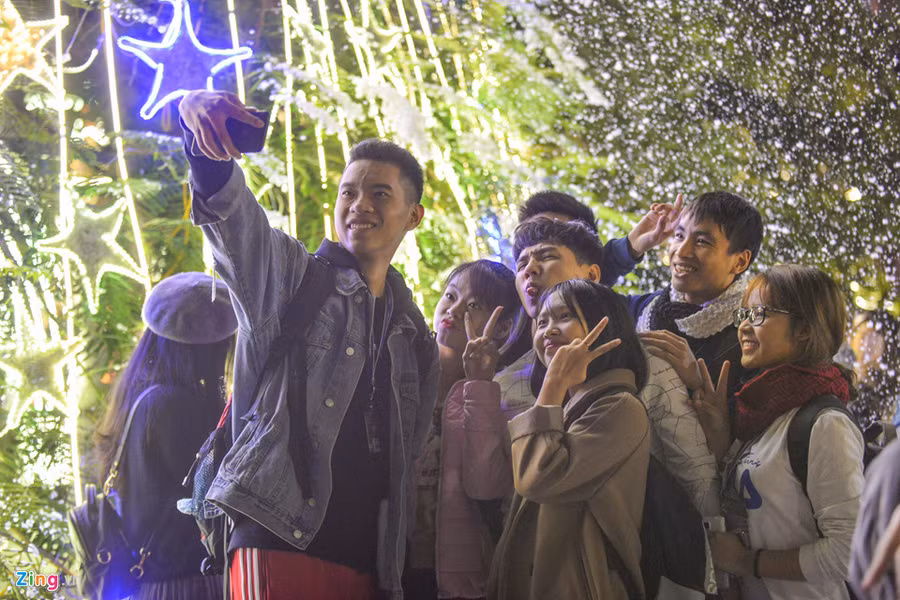 Vũ Xuân Lực (sinh viên năm nhất) khá hào hứng khi lần đầu được đón mùa đông ở Hà Nội. “Không khí ở đây khá đặc biệt so với quê hương mình (Điện Biên). Gần một tháng nữa mới đến Noel, mình đã được vui chơi ngay từ bây giờ”, Lực nói.