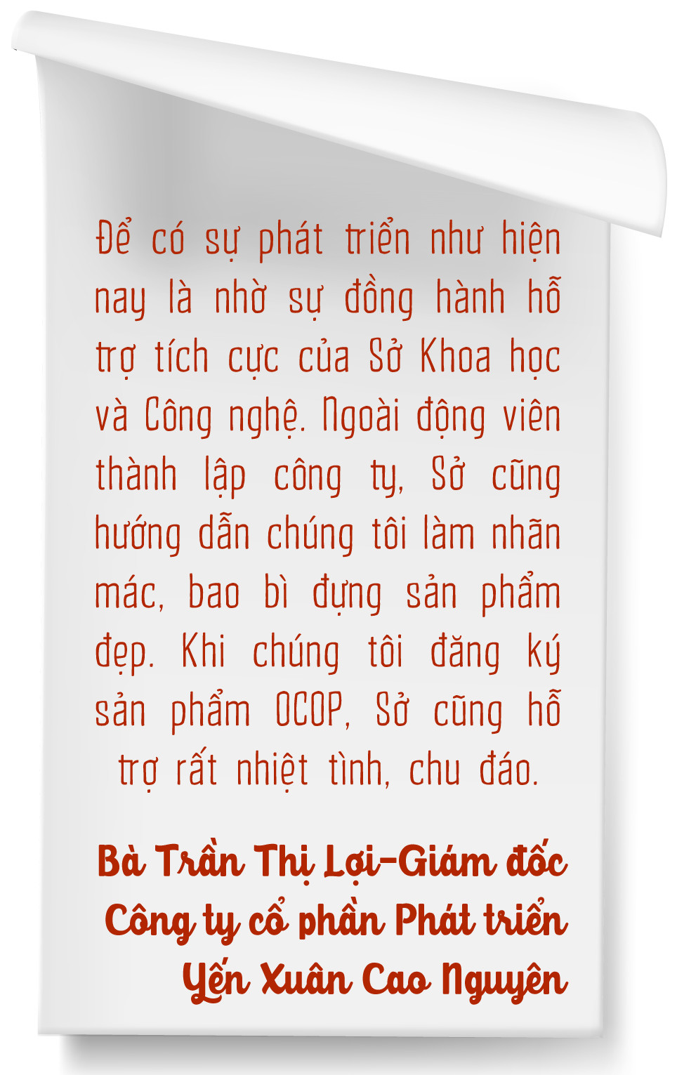 Trao đổi với chúng tôi, ông Trần Anh Tuấn-Phó Giám đốc Sở Khoa học và Công nghệ-thông tin: “Những năm gần đây, việc bảo hộ thương hiệu cho các sản phẩm ngày càng được quan tâm. Chúng tôi đã tư vấn cho hơn 600 tổ chức, cá nhân về đăng ký bảo hộ quyền sở hữu công nghiệp. Trong số này có rất nhiều nhãn hiệu yến sào như: Yến sào Hồ Gia Hưng, Yến sào Lan Toàn, Yến sào Xuân Cao Nguyên… Sở cũng hướng dẫn xây dựng logo, bao bì, thực hiện truy xuất nguồn gốc, đăng ký mã số, mã vạch cho sản phẩm yến sào. Ngoài ra, Trung tâm Kỹ thuật Tiêu chuẩn Đo lường chất lượng của Sở cũng tiếp nhận và phân tích các tiêu chí liên quan đến chất lượng sản phẩm yến sào để công bố tiêu chuẩn chất lượng, tham gia đánh giá, phân hạng sản phẩm OCOP. Sở sẽ tiếp tục hỗ trợ người nuôi yến trong những năm tới đây”.