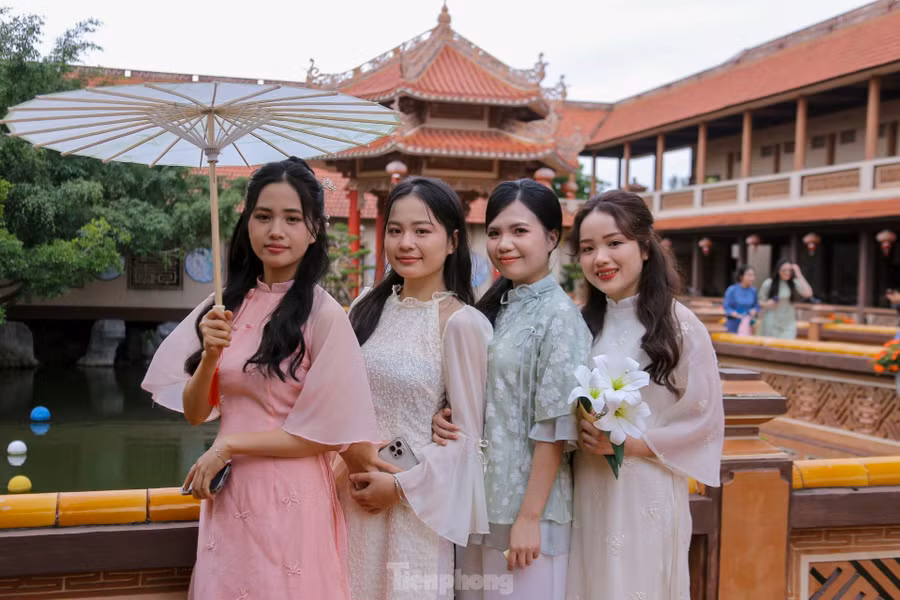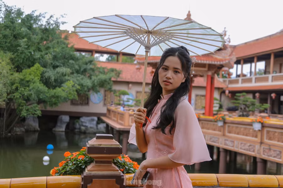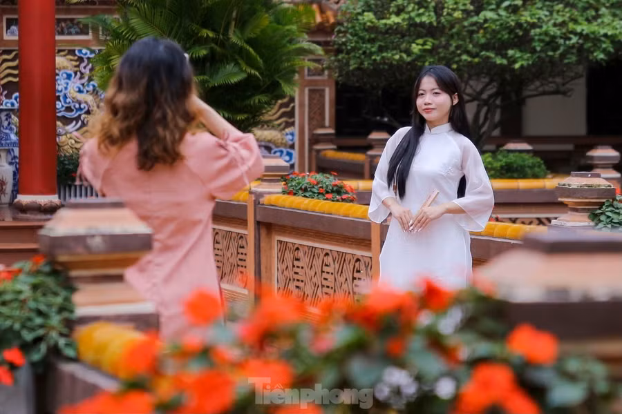 Còn khoảng một tháng nữa đến Tết Nguyên đán, thời điểm này, nhiều bạn trẻ tại Đà Nẵng đã xúng xính áo dài cùng nhau chụp ảnh đón Tết sớm.