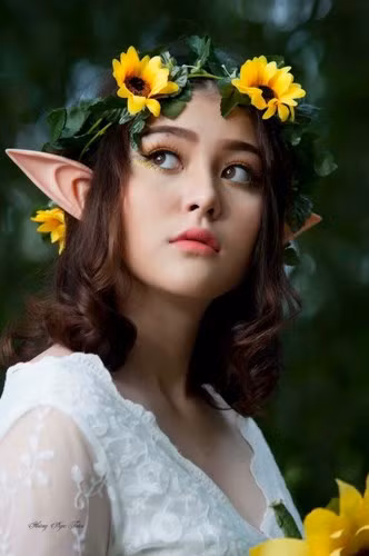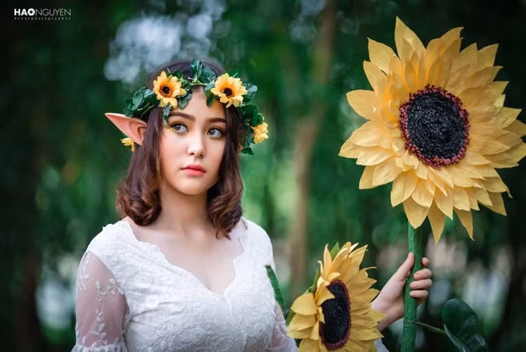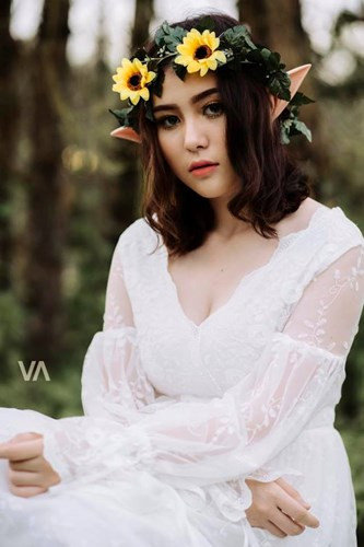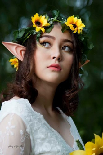 Thừa hưởng nét đẹp từ bố người Mỹ, cộng với chiều cao nổi bật 1m67 nên dù có gắn thêm chiếc tai giả để biến mình thành "dị nhân" thì cô bạn 10X này vẫn rất xinh đẹp.