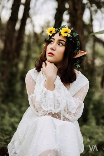 Mới đây, nữ sinh mang hai dòng máu Việt - Mỹ tiếp tục gây ấn tượng khi hóa thân thành "nàng yêu tinh" xinh đẹp hút hồn "lạc" giữa rừng sâu.