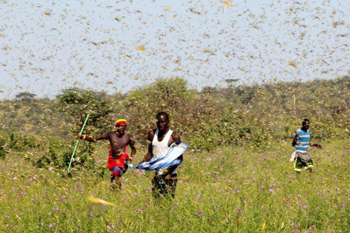 Châu chấu sa mạc hoành hành tại làng Lemasulani thuộc hạt Samburu của Kenya. REUTERS