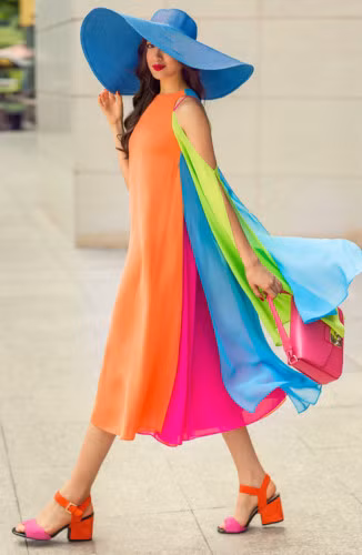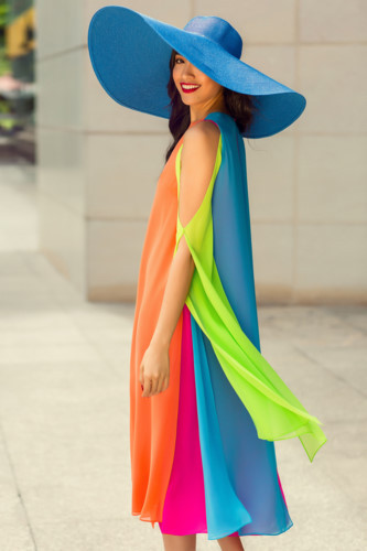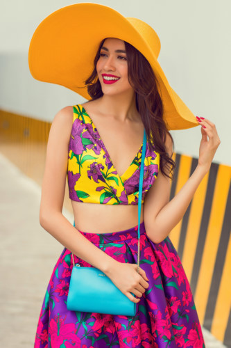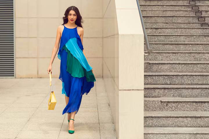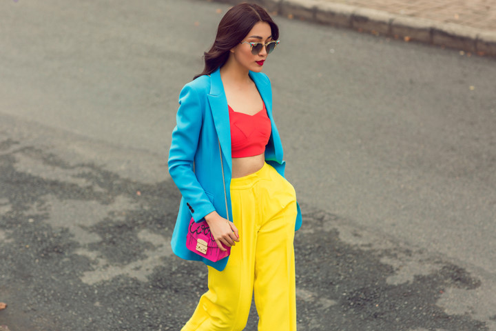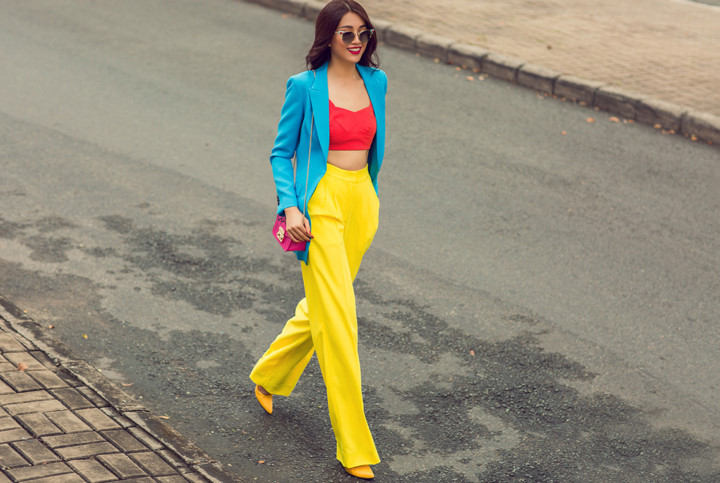 Xuất hiện trên đường phố, Á hậu Lệ Hằng cuốn hút mọi ánh nhìn với những gam màu rực rỡ, bắt mắt của bộ sưu tập Life in Color.