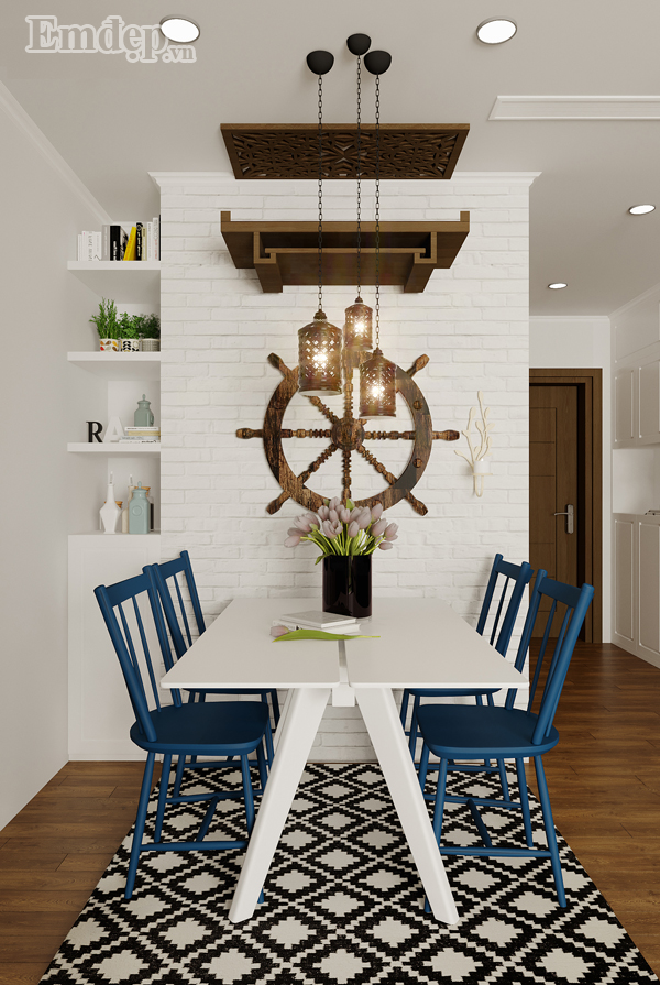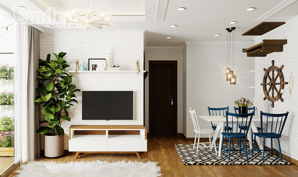 Căn hộ 80 m2 được kiến trúc sư thiết kế ở chung cư Gardenia Mỹ Đình, Hà Nội. Gia chủ là người cởi mở, yêu màu xanh của biển cả, thích phong cách mộc mạc, gần gũi với thiên nhiên.