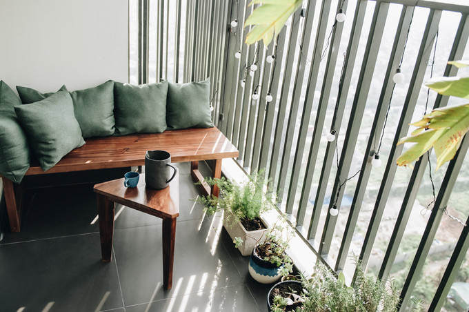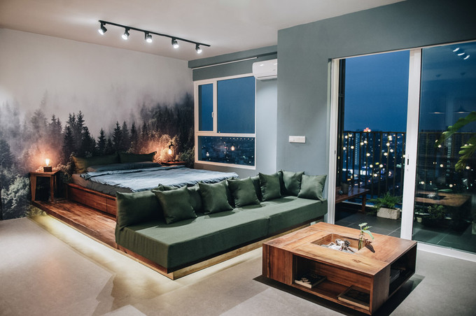 Trên thực tế, đây là dạng căn hộ studio của NTK với đầy đủ phòng khách, phòng ngủ, bếp ăn… và ban công có cây xanh.