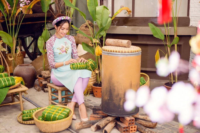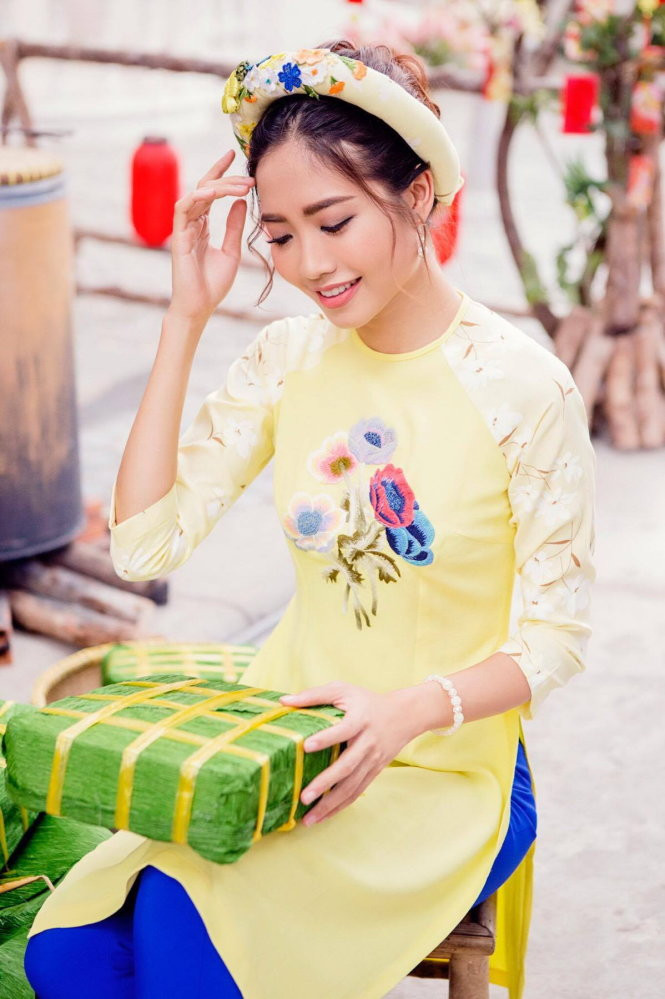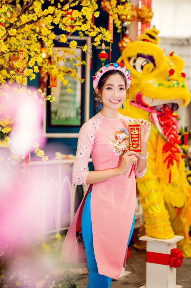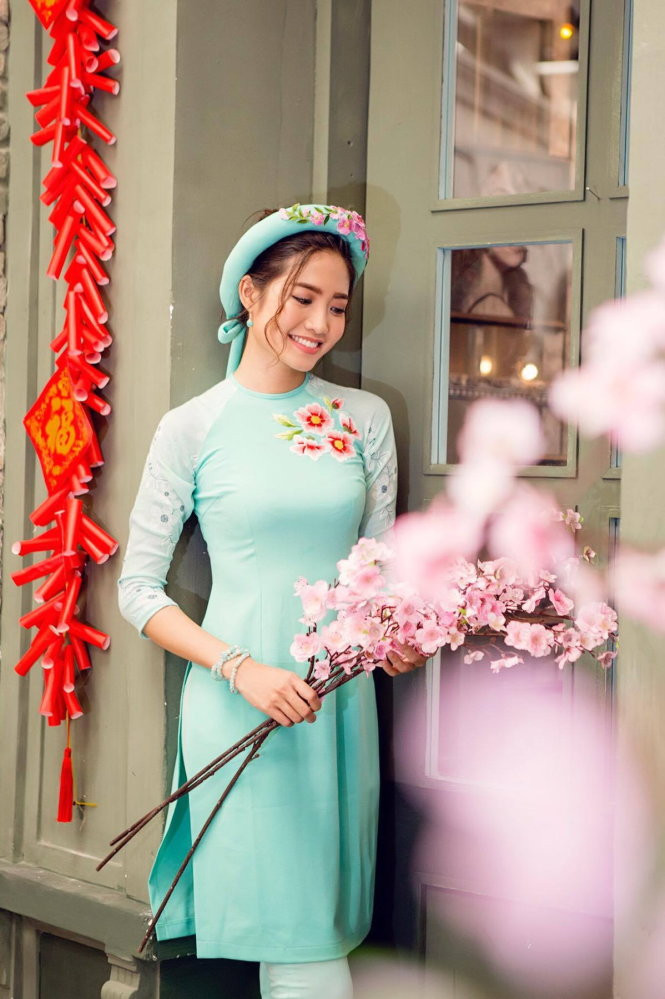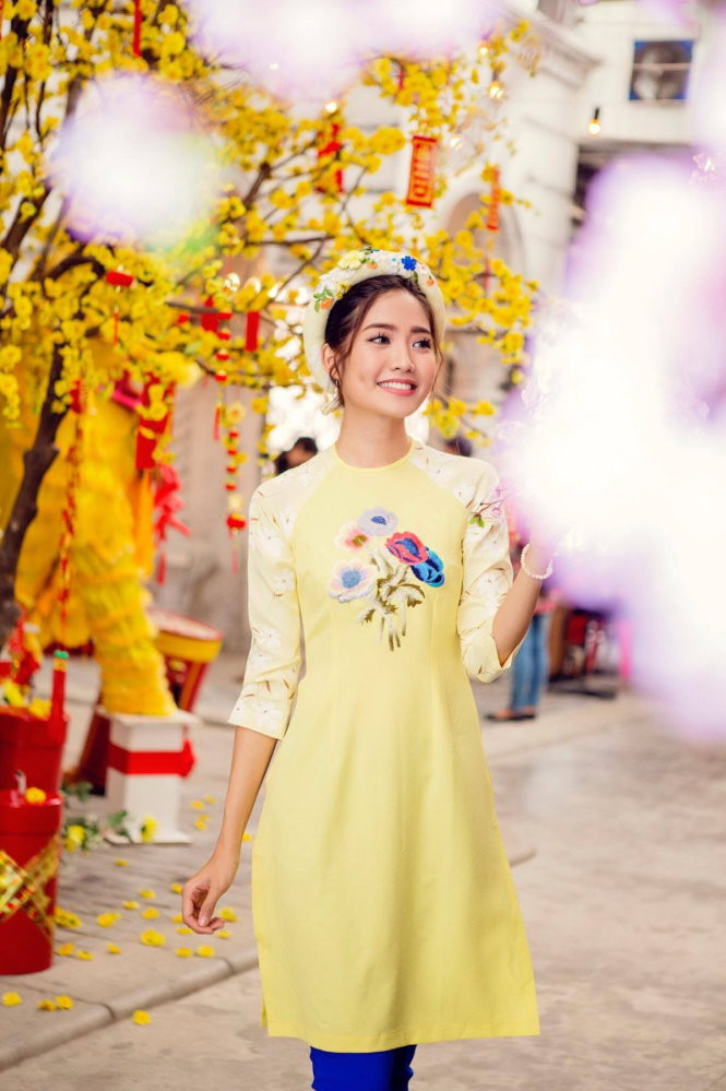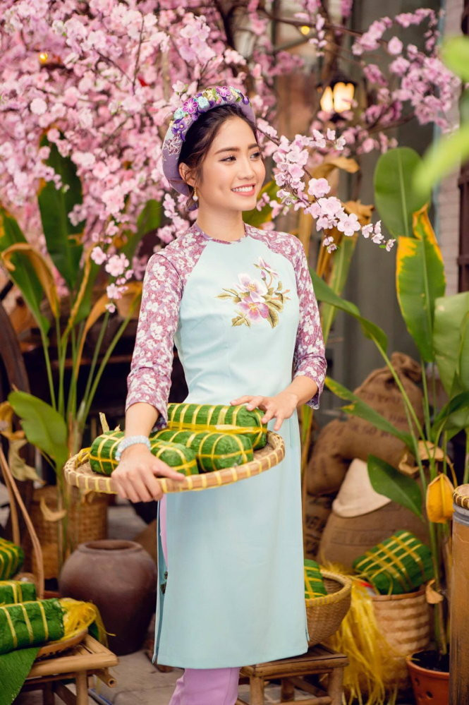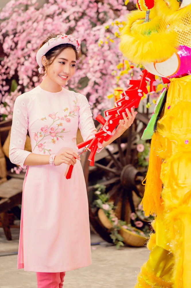 | Hoa hậu biển Ninh Hoàng Ngân với một mẫu áo dài giới thiệu cho ngày Tết - Ảnh: Alexz |