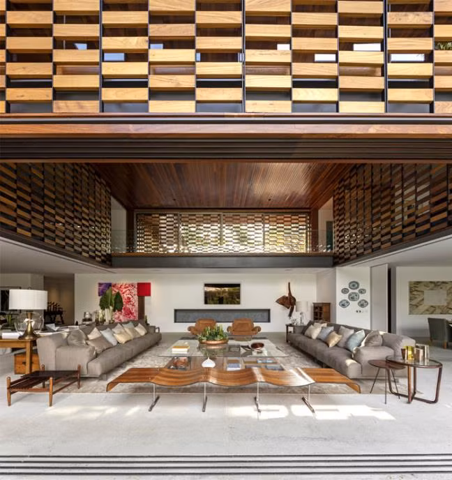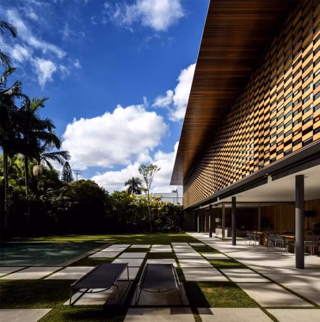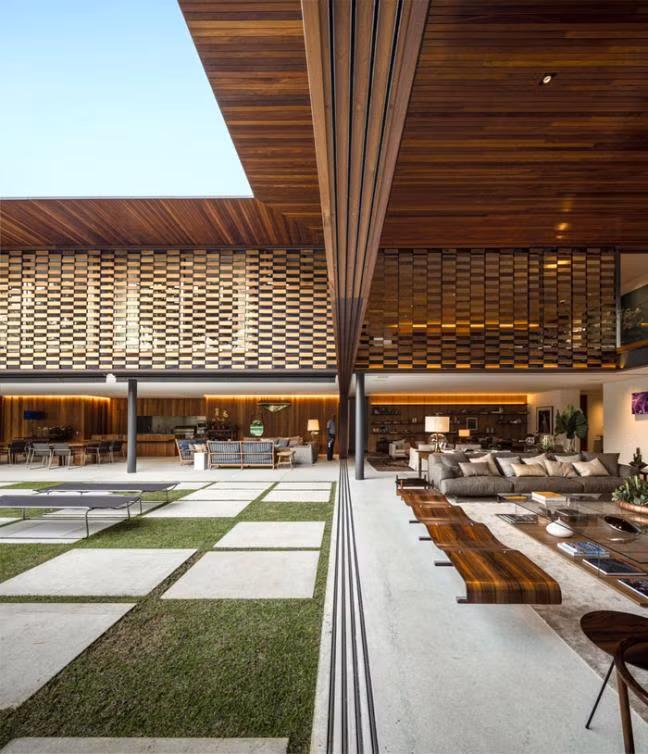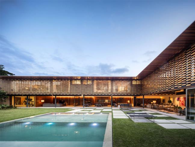 Ngôi nhà gỗ này bản chất là một nhà nghỉ dưỡng được xây dựng ở Sao Paulo, Brazil. Nó được làm chủ yếu từ chất liệu gỗ và khung sườn thép, bao quanh bởi rừng cây nhiệt đới, nhiều ao hồ và quan trọng hơn hết, nó có kiểu thiết kế hình L độc đáo.