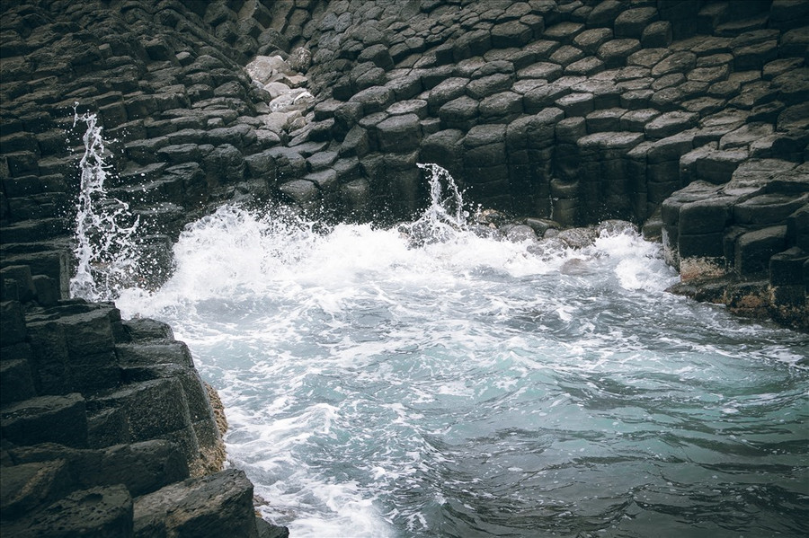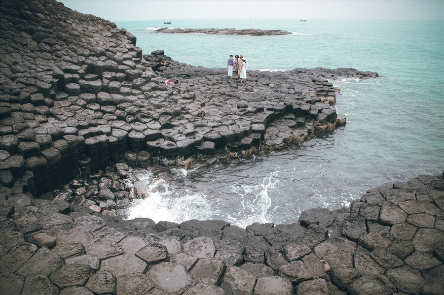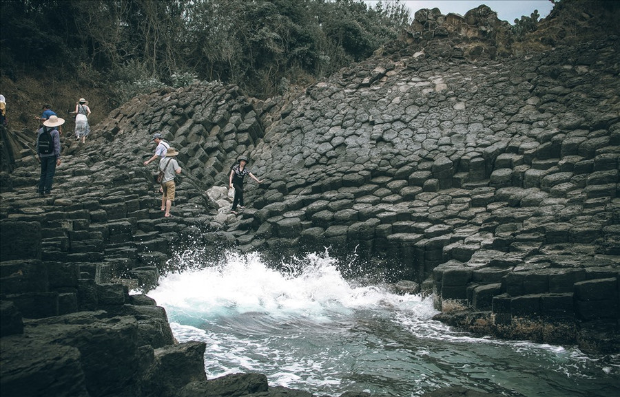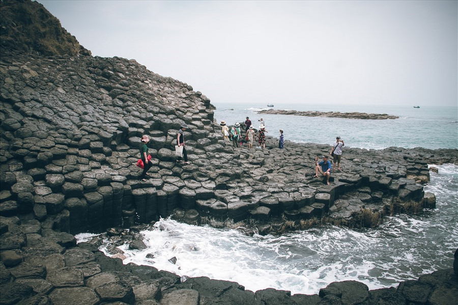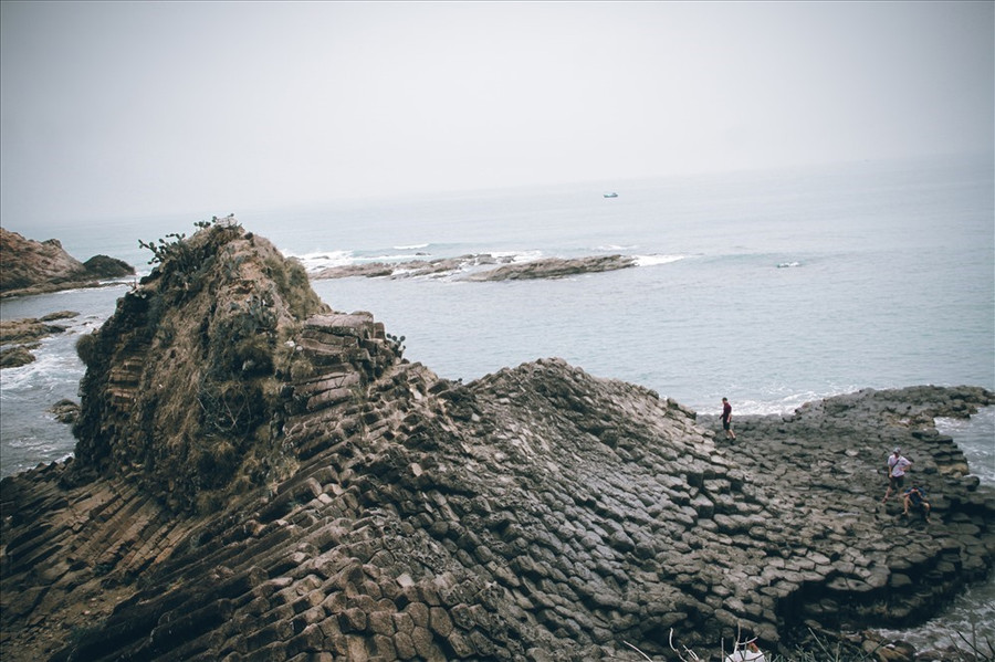Những khối đá hình lăng trụ xếp liền nhau, ngay ngắn cùng vươn mình ra biển khơi