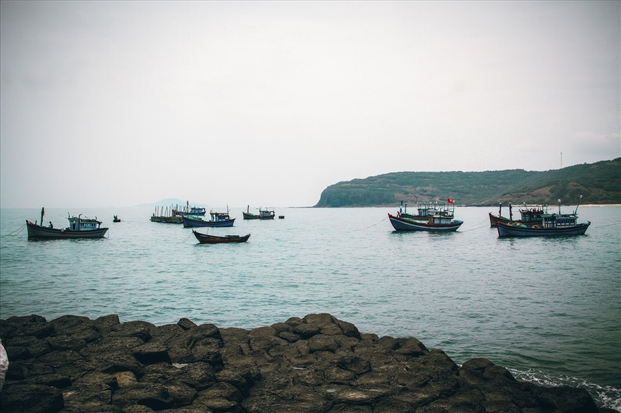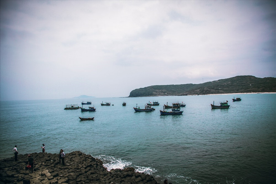 Đến với Ghềnh Đá Đĩa du khách sẽ bắt gặp hình ảnh những chiếc thuyền thúng của ngư dân neo đậu tại Ghềnh sau những chuyến biển dài ngày.