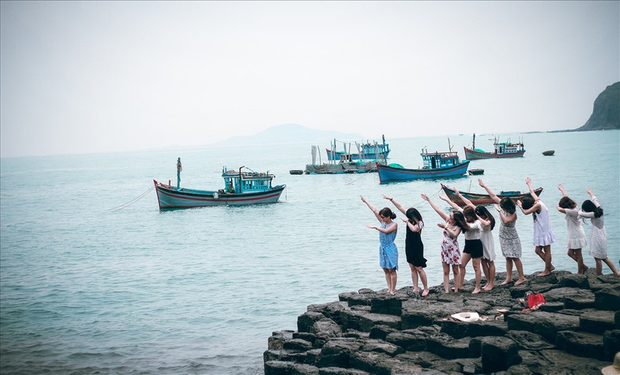 Bãi đá với hàng nghìn, hàng nghìn những phiến đá ấy, ánh lên màu đen huyền bí nổi bật giữa nước biển xanh ngắt và những con sóng vỗ trắng xóa.