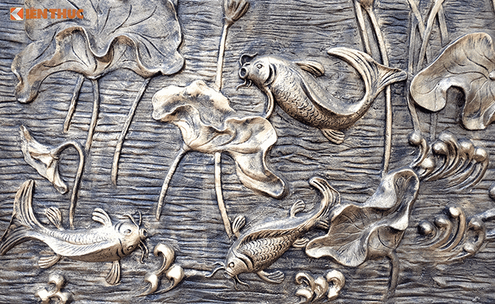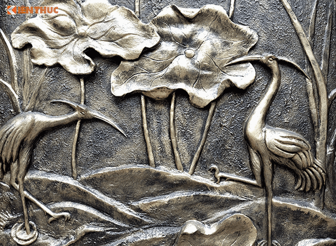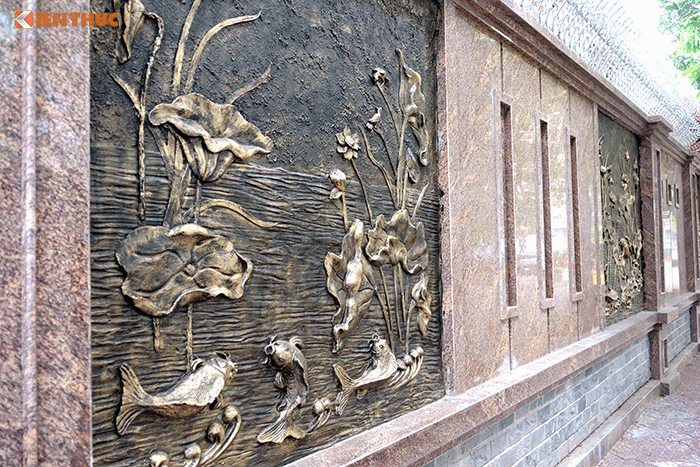 Dù chỉ là tường rào nhưng bức tranh hạc và sen cũng được thể hiện một cách cầu kỳ, tỉ mỉ. Trong quan niệm phương đông, hạc và sen là loài vật, loài cây tượng trưng cho sự cao quý, không vướng bụi trần.