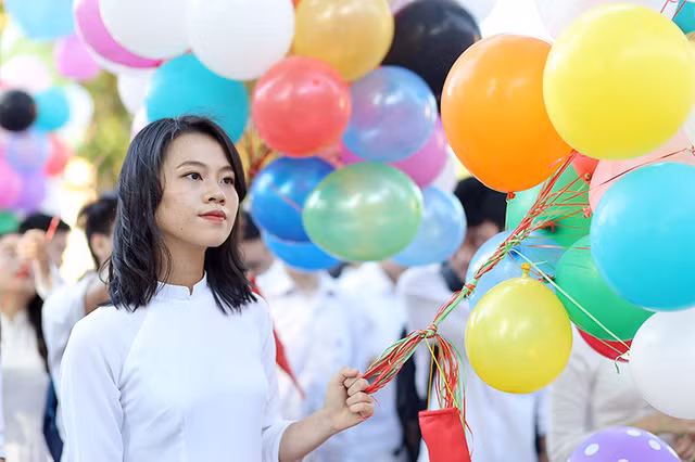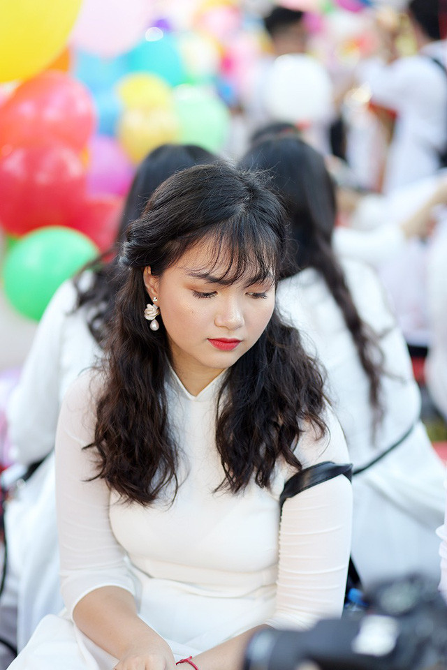 | Trong lễ bế giảng năm học 2017-2018, dường như nét đẹp của các nữ sinh trường Bưởi càng được tôn vinh bởi trang phục áo dài trắng tinh khôi |