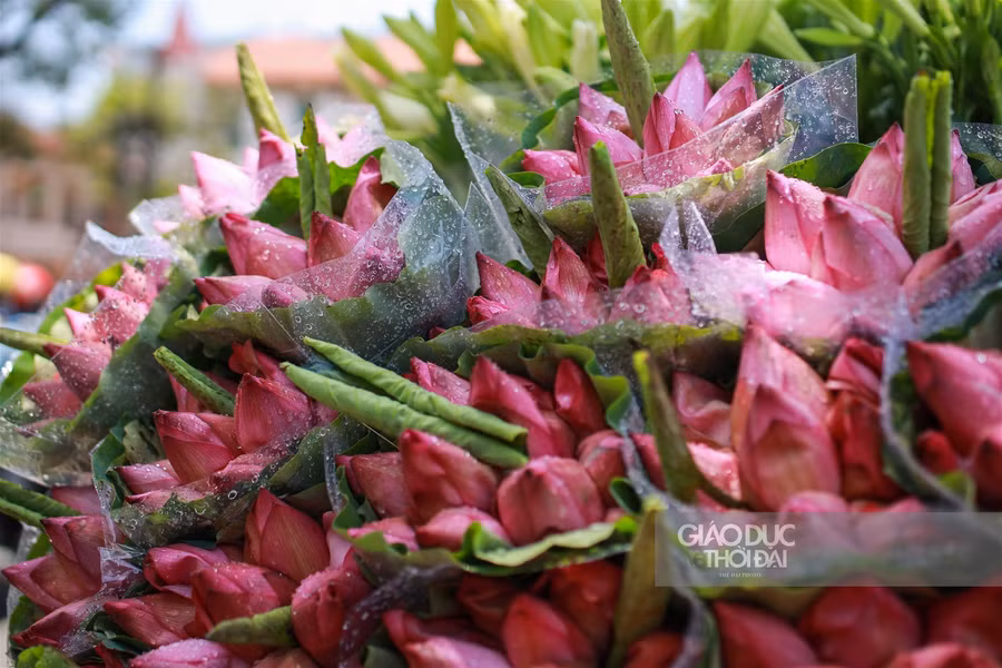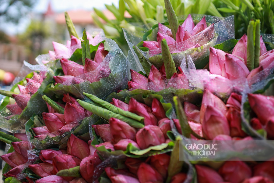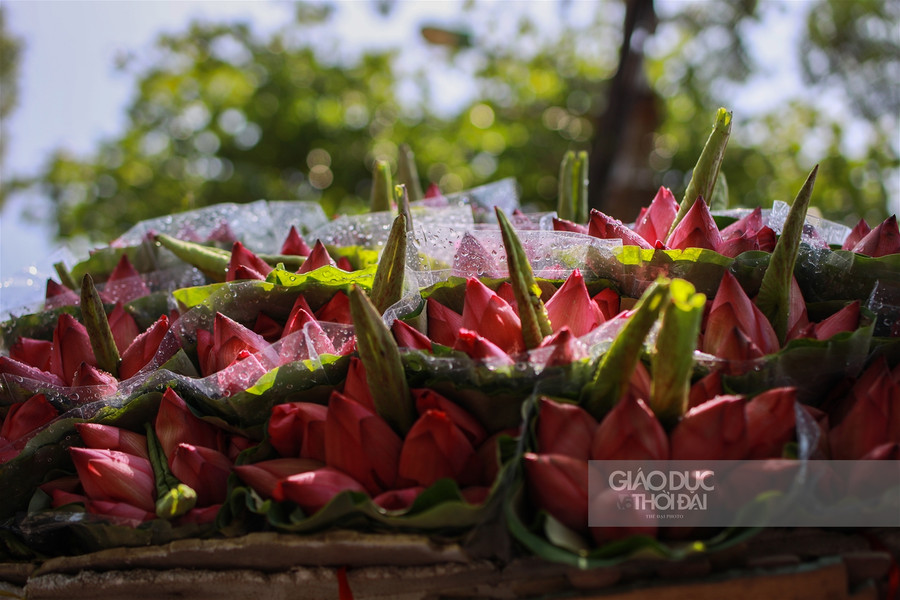 | Vào thời điểm này, trên đường phố đã thấy thấp thoáng hoa sen đầu mùa theo chân những vòng xe rong ruổi khắp phố phường. |